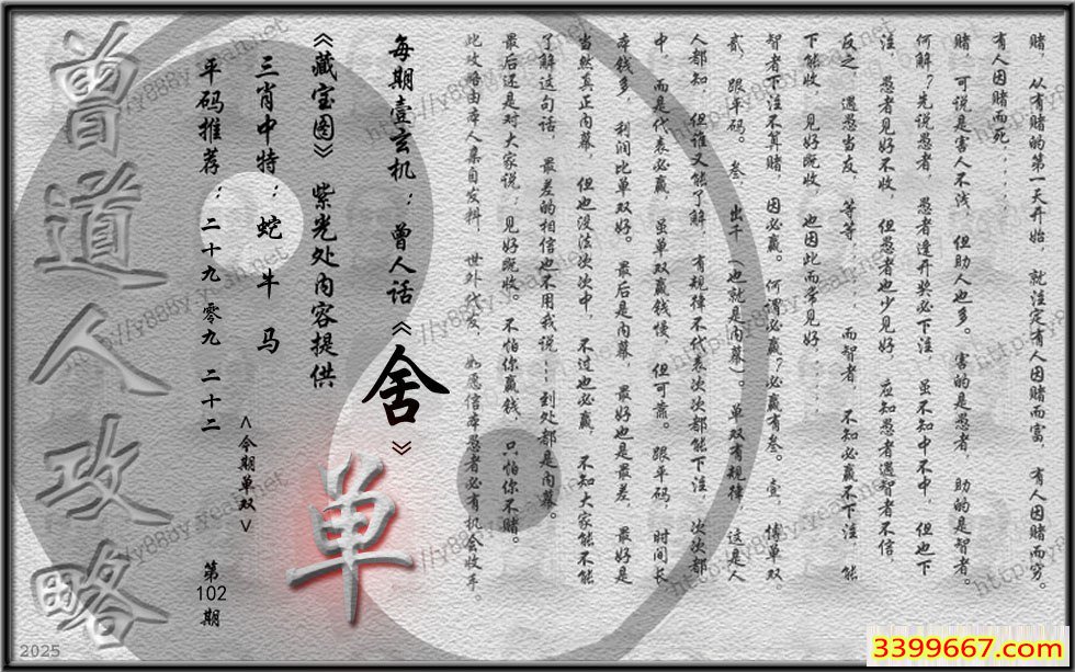 主题 :102期藏寶圖 新:阊阖前临万岁山 老:欲到花时点检来 禁:狗 禁:5尾 |
