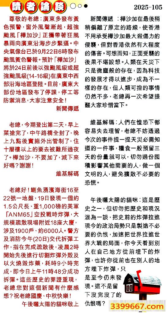 主题 :105期:彩民推荐〖貼信讀者論壇〗 |