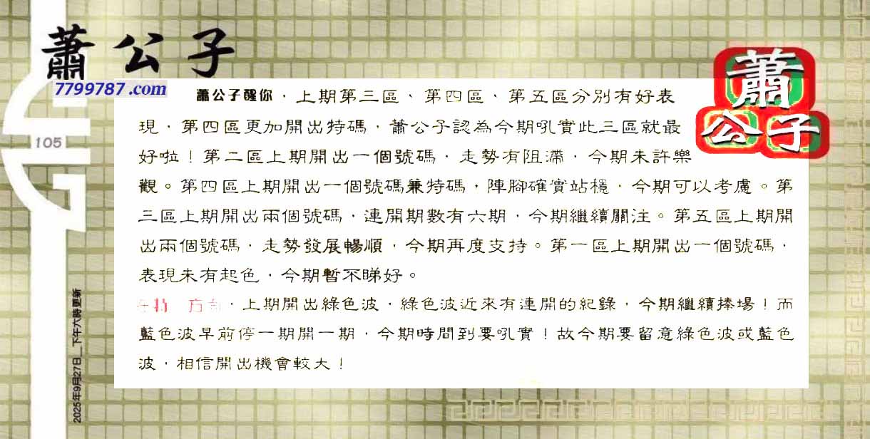 主题 :105期:六合皇金句/老总论码/萧公子/林大师/五行夺码/老总信箱截 |