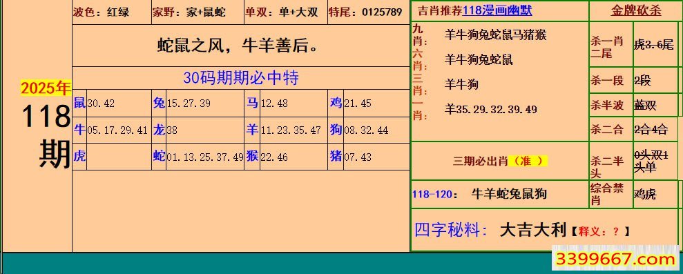主题 :118期:小鱼儿30码期期中+幽默猜测