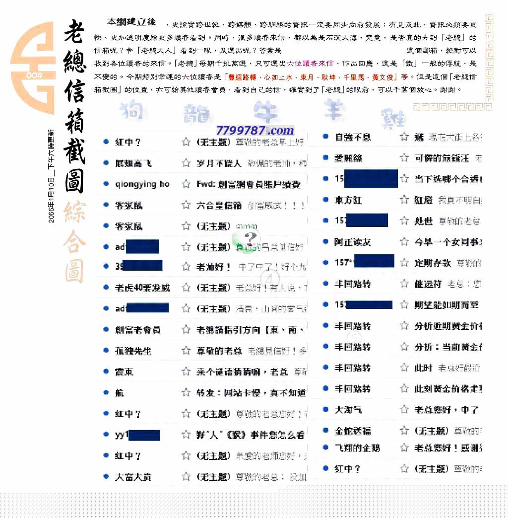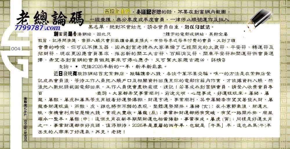 主题 :004期:六合皇金句/老总论码/萧公子/林大师/五行夺码/老总信箱截