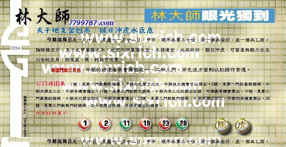 004期:六合皇金句/老总论码/萧公子/林大师/五行夺码/老总信箱截