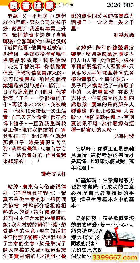 005期:彩民推荐〖貼信讀者論壇〗