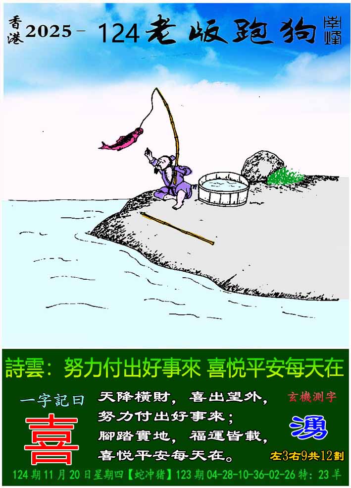 | 主题 :124期老版跑狗一字記之曰:【喜】 玄機測字:《湧》 |